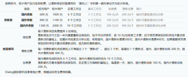 以武汉大学图书馆查新服务为例,收费标准如下,我校教师属于“校外用户”。