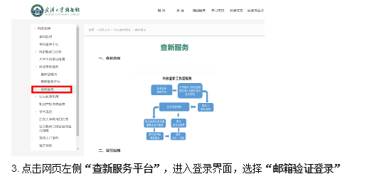 3.点击网页左侧“查新服务平台”,进入登录界面,选择“邮箱验证登录”