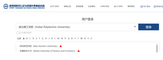 3.在登录界面搜索栏输入“湖北理工学院”并点击登录;
