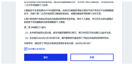 5.仔细阅读使用条款,勾选“我同意此使用条款”,点击“提交”;